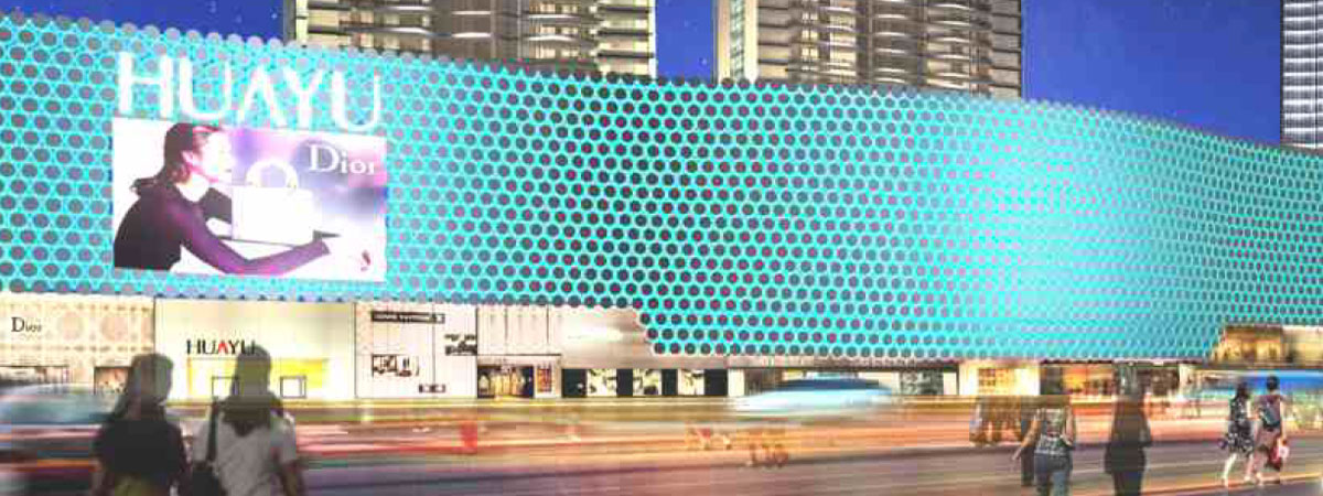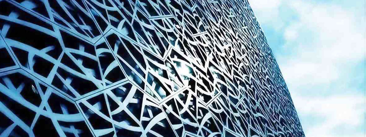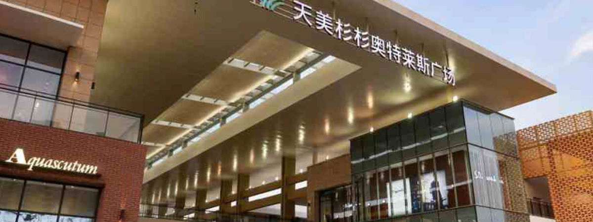 該系列產品多用于建筑內外墻裝飾,可起到遮陽、通風、美化建筑外觀,增添生活藝術的效果。雕花鋁單板的技術也應用到了我們生活中的很多建筑當中,例如下圖中的天美杉杉奧特萊斯廣場: